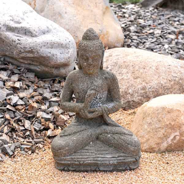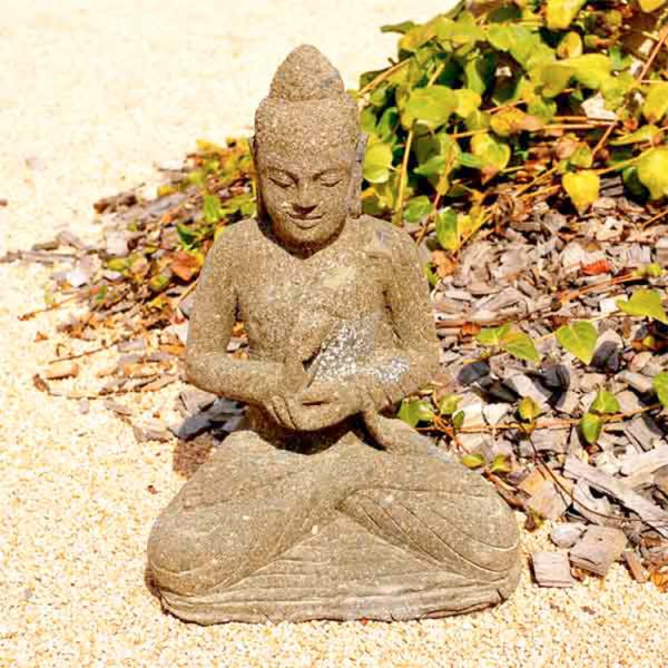 El buddha sentado Chakra es una figura completamente artesana esculpida a mano en bloques de piedra volcánica llamada Greenstone. Cada figura, única, aporta una sensación de paz y bienestar y encaja perfectamente en jardines de estilo zen.