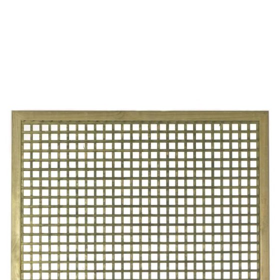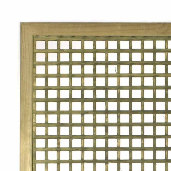 Celosía realizada en madera tratada en autoclave cuyo entramado dibuja cuadros. Las celosías se utilizan para delimitar, proteger, decorar y aislar todo tipo de espacios. Dejan entrar la luz y el aire, impiden ser visto pero permiten ver. También ofrecen soporte para plantas trepadoras y tapizantes.