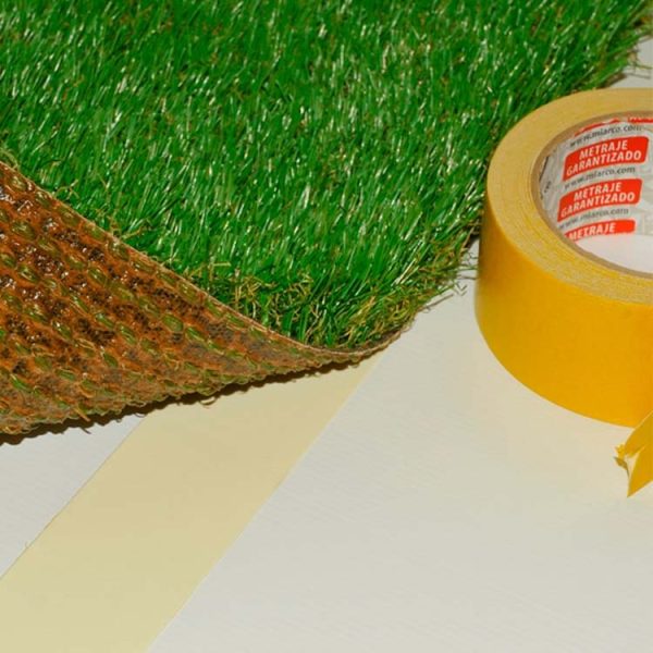 La cinta adhesiva de doble cara está diseñada para proporcionar una unión firme entre el césped sintético y el suelo. Su capacidad adhesiva garantiza una conexión segura, evitando desplazamientos no deseados del césped.