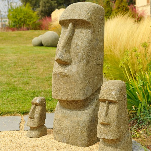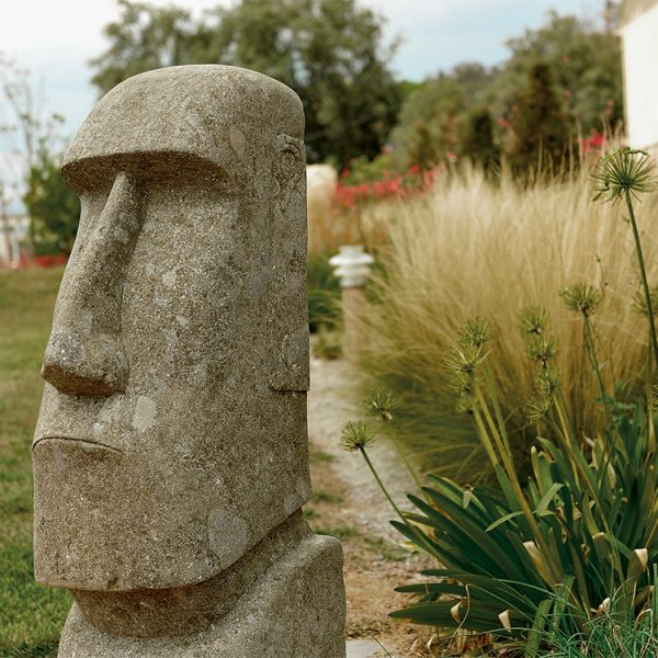 Los moáis son inicialmente unas estatuas monolíticas humanoides ubicadas en la isla de Pascua Rapa Nui (Chile). Simbolizan representaciones de antepasados difuntos, que proyectan su poder sobrenatural sobre sus descendientes. La mayoría de los moáis originales se construyeron con piedra volcánica. Bruc Jardí respeta esta tradición ofreciendo una serie de moáis esculpida a mano por maestros artesanos en piedra volcánica (green stone).