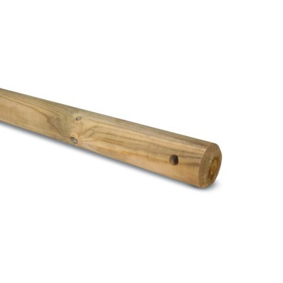 Ideal para su uso con cuerda sisal, el palo torneado de madera de pino en diámetro 12 cm está tratado en N-IV, la mecanización en forma de agujero con el tamaño justo para introducir dicha cuerda, para cercados y delimitaciones, fácil de instalar.