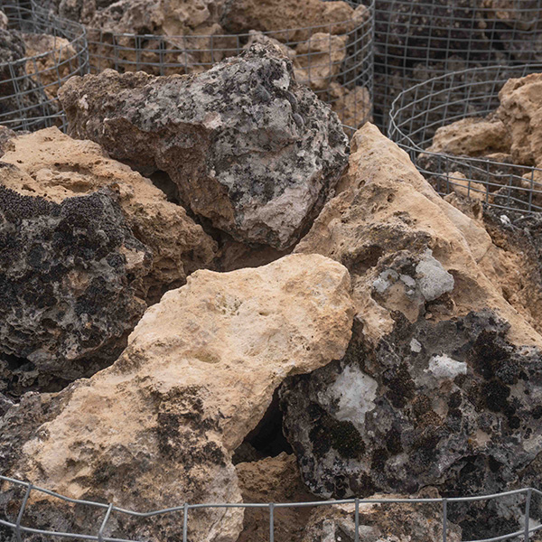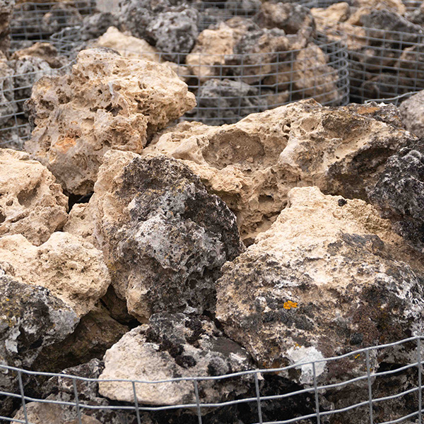 Un clásico en jardinería, la piedra de rocalla se usa des de tiempos inmemoriales, es versátil, manejable y su tonalidad se adapta a cualquier espacio. Apta para pequeños muros, en separadores, alcorques y aisladas en grupos.